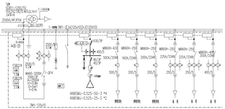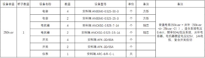 根據圖紙選擇合適的配置方案:250kvar=50kvar *4 +25kvar *2,電抗率14%。