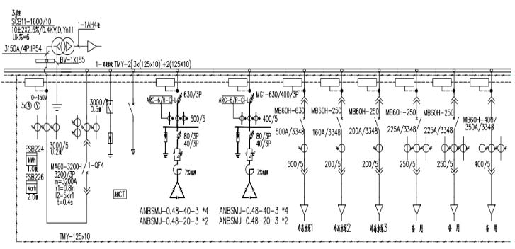 根據圖紙選擇合適的配置方案:200kvar=40kvar *4 + 20kvar *2,電抗率7%。