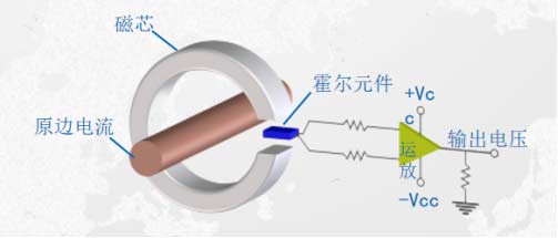 霍爾電流傳感器以霍爾元件為核心,用于隔離檢測電流的傳感器。當電流流過一根導線時,將在導線周圍產生磁場,磁場的大小與流過導線的電流大小成正比,這一磁場可以通過軟磁材料來聚集,然后由霍爾元件來檢測,用霍爾元件在磁芯氣隙處感應原邊電流IP的大小和方向;魻栐妮敵鲭妷海涍^信號處理電路,使傳感器的輸出可以反映被測電流的大小。