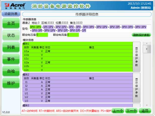 傳感器實時監測三相交流電壓/電流,具有過壓、欠壓、過流報警功能;提供兩路開關量輸入功能,可監測開關狀態;提供一路繼電器輸出,可連接報警控制回路;具有事件存儲功能,報警器能夠記錄報警發生的時間、類型、參數,根據報警記錄可以分析現場情況,為解除故障提供依據;采用現場二總線通訊技術,上位機管理軟件可以時刻監控現場的運行情況,及時發現報警信息;集成度高,網格化,智能化程度高,動作特性合理。
