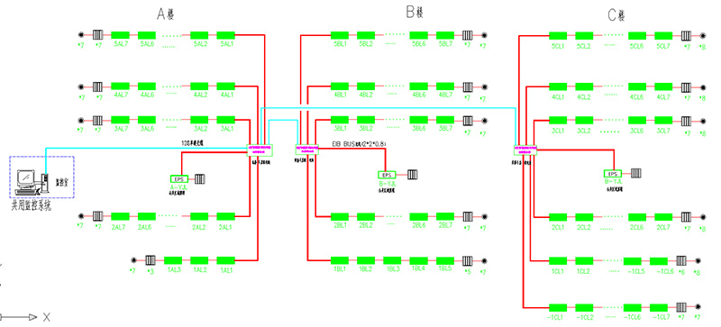 學校照明系統(tǒng)采用Acrel-Bus智能照明系統(tǒng),由于系統(tǒng)采用KNX分布式總線結構。布線簡單靈活,各模塊可獨立工作互不影響,系統(tǒng)可靠性更高。模塊工作在直流30V安全電壓下,用戶操作更加安全。升級或更改系統(tǒng)功能時,無需關閉整個系統(tǒng),只需更改設備參數即可。系統(tǒng)報警定位功能,實時監(jiān)測并上傳集中控制端,方便設備人員準確定位并及時報修。下面通過一些項目圖紙詳細介紹該系統(tǒng)的設計流程。