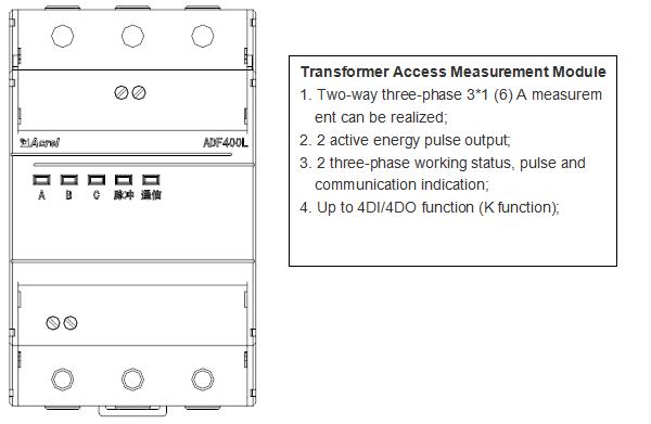 ADF400L Multi Circuits Energy Meter can achieve up to 12 three-phase or 36 single-phase direct access measurement or 12 three-phase mutual inductor access measurement, a hybrid of direct access and mutual inductor access through module combination measurement method.