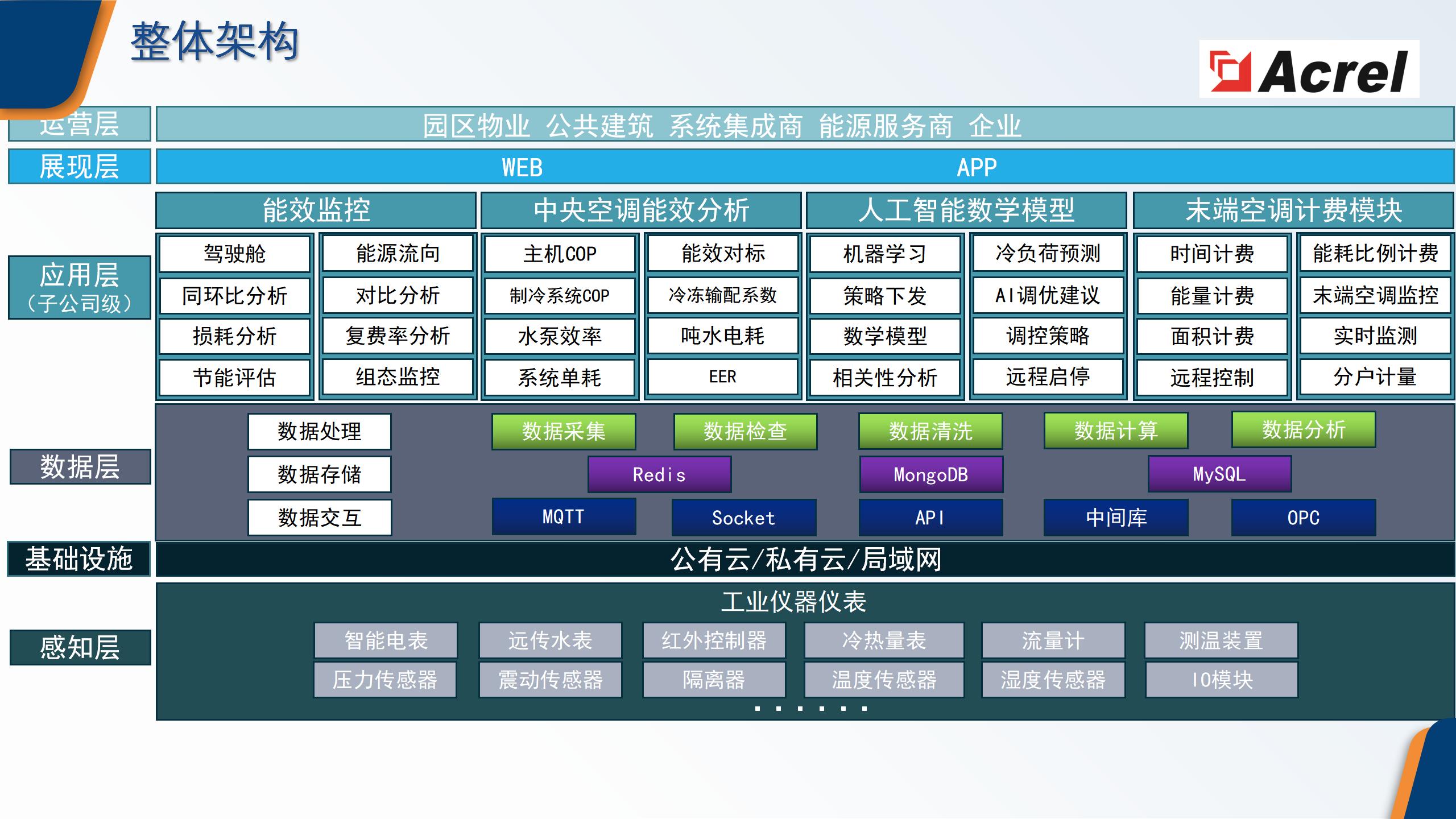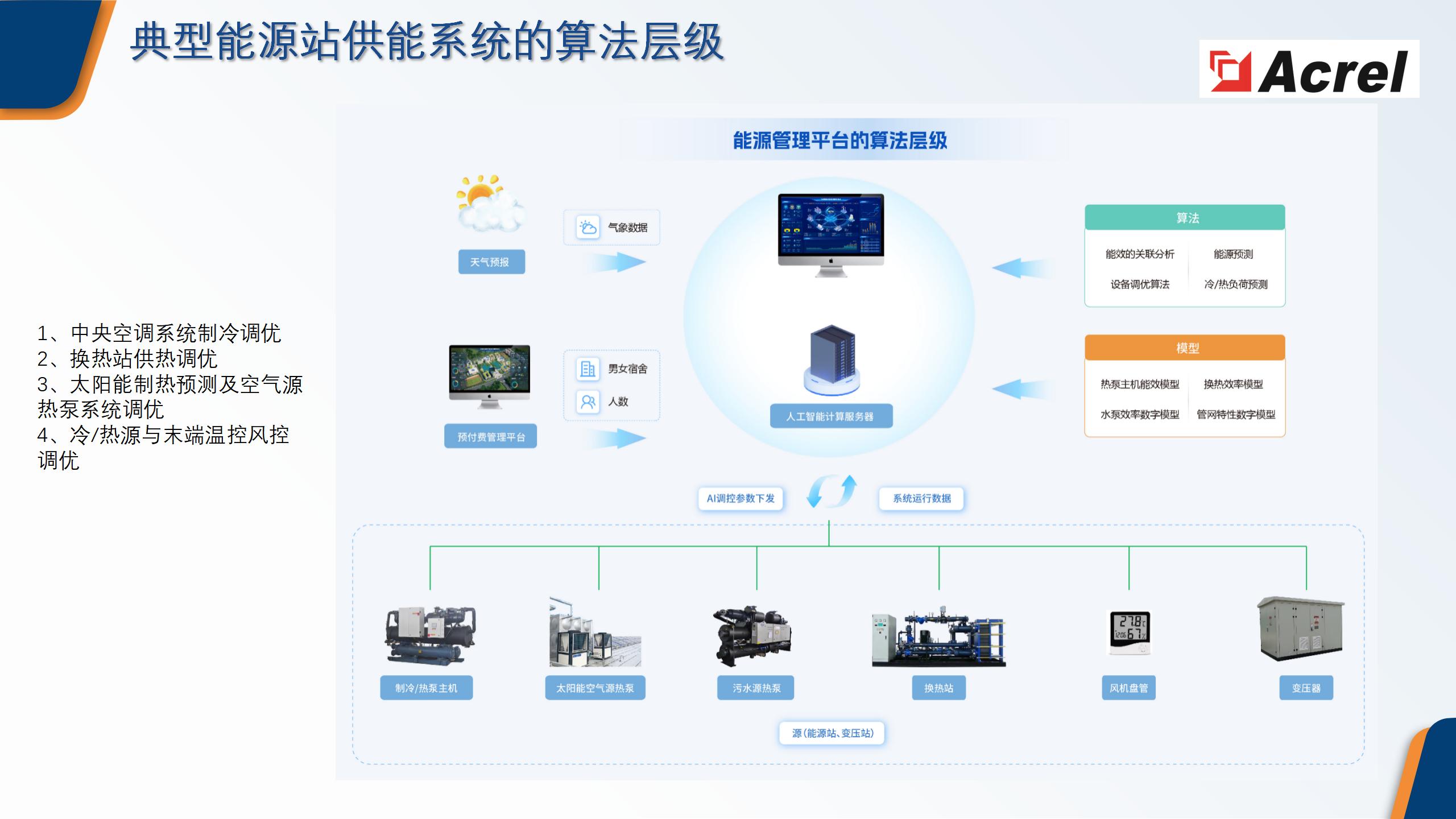 能源管理結(jié)構(gòu)不清因能量計(jì)量點(diǎn)位不全,造成能源管理責(zé)任劃分不清晰;管理能力有待提高缺乏系統(tǒng)運(yùn)行感知中央空調(diào)系統(tǒng)運(yùn)行電耗占比大,但有的缺乏系統(tǒng)/設(shè)備監(jiān)控;有的細(xì)分電耗缺失;有的不能分析運(yùn)行能效水平;末端風(fēng)設(shè)備缺乏集中監(jiān)控末端空調(diào)設(shè)備數(shù)量多,分布散,缺乏集中管控:使用相對(duì)隨意,存在浪費(fèi)情況;依賴人工操作,人工操控系統(tǒng)運(yùn)行,極為依賴操作經(jīng)驗(yàn)和人員責(zé)任心存在浪費(fèi);系統(tǒng)運(yùn)行出力不能根據(jù)負(fù)荷的變化而變化存在大馬拉小車的情況。