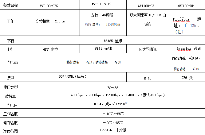 a)4G/NB/2G型號(hào)及技術(shù)參數(shù)