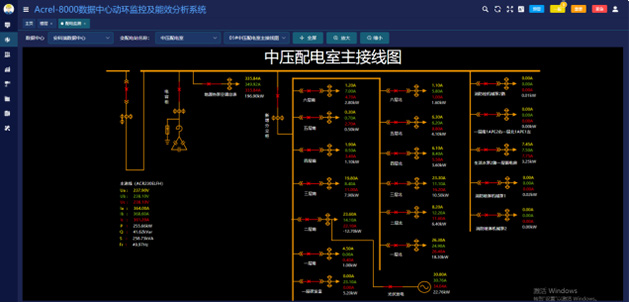 1)配電監(jiān)測可以通過一次圖形式幫助用戶了解每一個機(jī)柜的運(yùn)行情況,數(shù)據(jù)實(shí)時刷新。