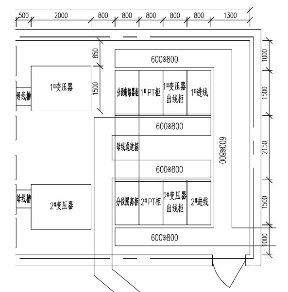 本工程為中國移動通信集團內蒙古有限公司錫林郭勒分公司10kV供配電工程項目,10kV系統(tǒng)為單母線分段接線形式,兩進線,母聯(lián)開關之間設置電氣連鎖,電纜下進線上出線,變壓器采用真空式斷路器,采用戶內金屬鎧裝移開式高壓開關柜,主變進線柜、分段柜、出線柜斷路器額定電流選用1250A,額定開斷電流選用25kA。10kV電壓互感器選用戶內環(huán)氧樹脂澆注式,全封閉、全工況電壓互感器。變電所平面布局圖如下: