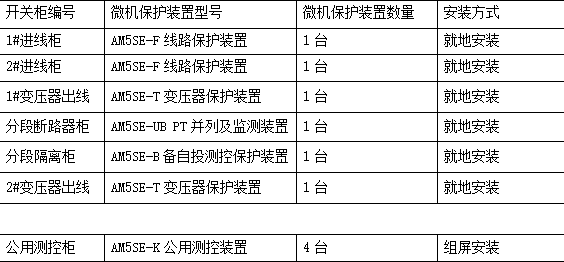 結合用戶實際生產工藝要求,為實現(xiàn)本項目10kV配電室的監(jiān)控與管理,針對不同保護對象配置微機保護裝置:10kV進線柜配置線路保護裝置AM5SE-F;10kV變壓器出線柜配置AM5SE-T變壓器保護裝置;10kV分段柜配置AM5SE-B備自投保護裝置;10kV母線設備柜配置AM5SE-UB PT并列及監(jiān)測裝置。