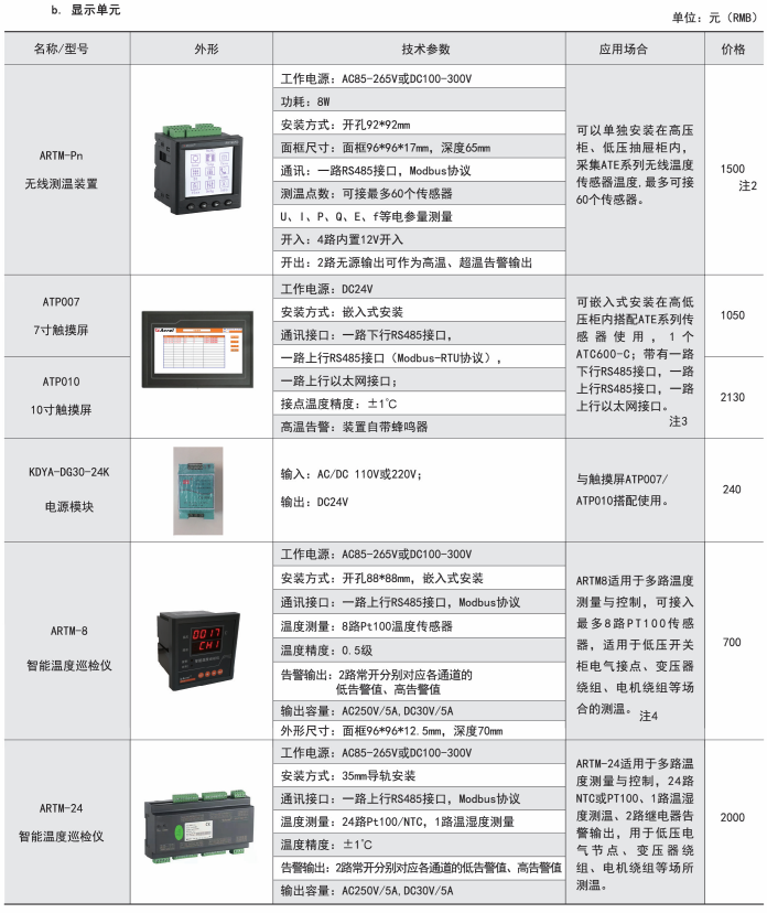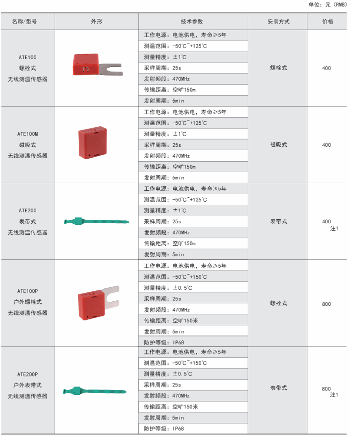 綜上所述,確定型號(hào)為:無(wú)線測(cè)溫裝置:ARTM-P9-300,1臺(tái);無(wú)線測(cè)溫傳感器:ATE300,9個(gè)
