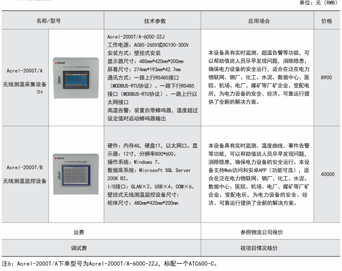 綜上所述,確定型號(hào)為:無(wú)線測(cè)溫集中觸摸屏:AARTM-7062HT-4(HI),1臺(tái);無(wú)線測(cè)溫傳感器:ATE200,90個(gè);無(wú)線測(cè)溫收發(fā)器:ATC200,10個(gè)