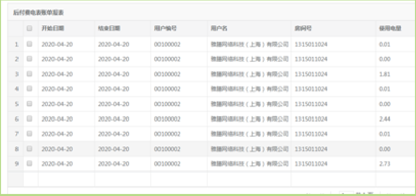 按日期生成后付費用戶周期用電費用,對數(shù)據(jù)進行確認后生成繳費賬單方便追蹤客戶繳費情況,可導出繳費賬單以及欠費賬單通知客戶。