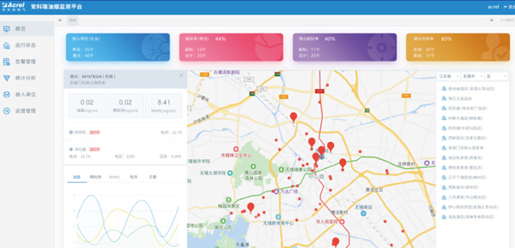 為了彌補現(xiàn)存餐飲行業(yè)在煙油監(jiān)測上的漏洞,同時便利監(jiān)管部門的監(jiān)察,安科瑞油煙監(jiān)測云平臺應(yīng)運而生。油煙監(jiān)測模塊通過2G/4G與云端平臺進行通信和數(shù)據(jù)交互,系統(tǒng)能夠?qū)ζ髽I(yè)餐飲設(shè)備的開機狀態(tài)、運行狀態(tài)進行監(jiān)控;實現(xiàn)開機率監(jiān)測,凈化效率監(jiān)測,設(shè)施停運告警,待清洗告警,異常告警等功能;對采集數(shù)據(jù)進行統(tǒng)計分析、排名等統(tǒng)計功能;較之傳統(tǒng)的靜電監(jiān)測方案,更具安全性和實效性。