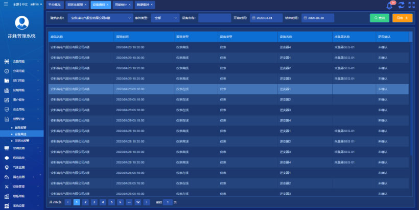 支持多種不同的報(bào)警類(lèi)型,為保證平臺(tái)運(yùn)行,提供儀表與網(wǎng)關(guān)的故障報(bào)警提醒,提供多種能耗預(yù)警模型供用戶選擇與配置。