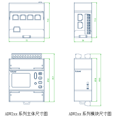ADW2xx系列導軌式多回路電力儀表方便用戶進行用電監測、集抄和管理?伸`活安裝于配電箱內,實現對不同區域和不同負荷的分項電能計量,統計和分析。